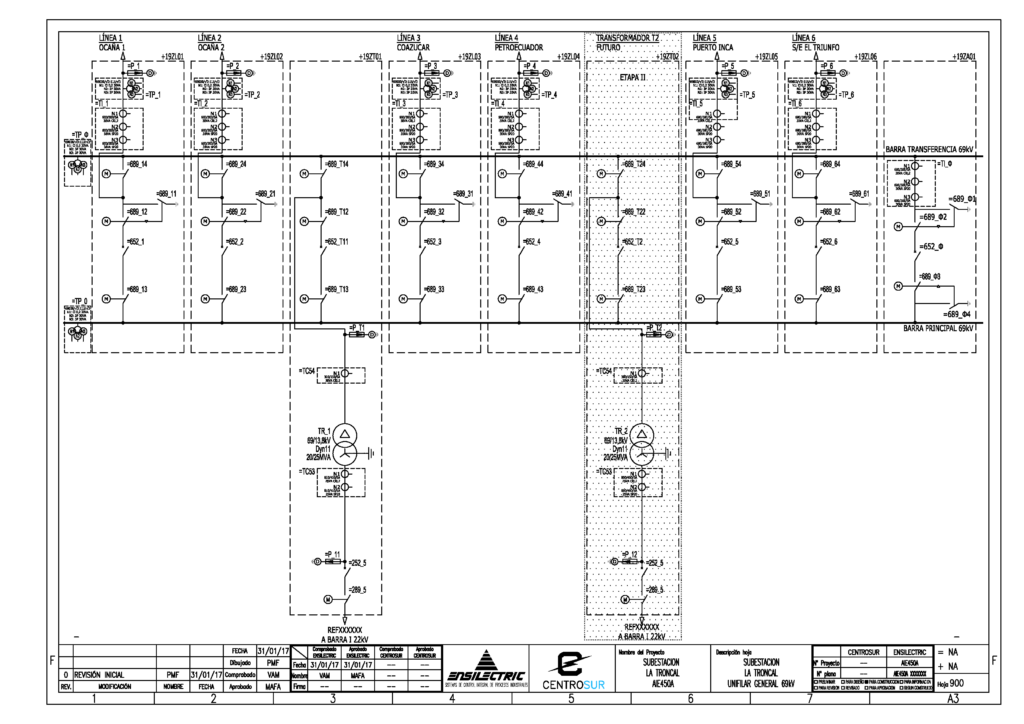 Subestación de distribución 69/22/13,8 KV, 25 MVA 5 Posiciones de línea, 1 posición de transferencia: